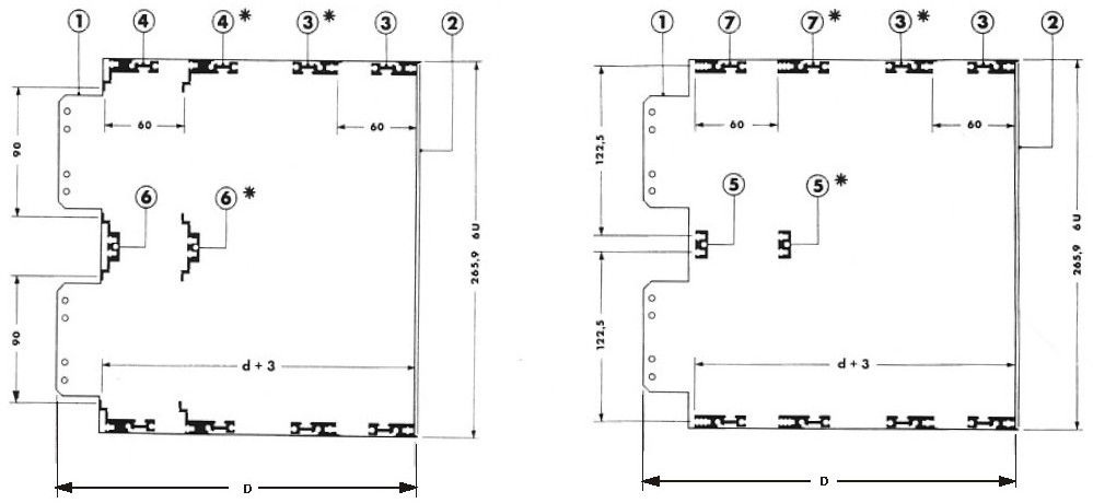 6U Subracks will accept 233.34mm Eurocards vertically and will also accept PCB’s suitable for 3U subracks by fitting a subrack divider accessory kit. PCB depths are indicated in the table below.